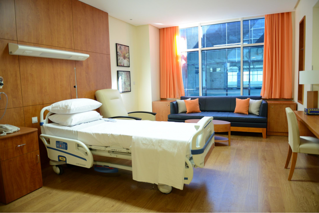 Учреждение рассчитано на 187 коек стационарного пребывания. Все палаты спроектированы с обеспечением максимального комфорта и оснащены телевизором, Wi-Fi и телефоном. Есть возможность семейного размещения. Отдельно клиника предоставляет VIP-палаты, из которых открывается потрясающий вид на такие достопримечательности как Атлантида, Бурдж-эль-Араб и улица Шейха Зайда.