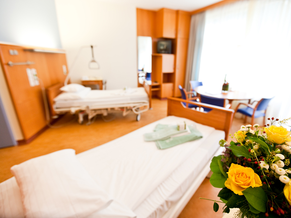 Для пациентов стационарного пребывания доступны одноместные и двухместные палаты, а также четыре палаты класса люкс. Большинство палат имеют выход на балкон, откуда открывается потрясающий вид на парк.
