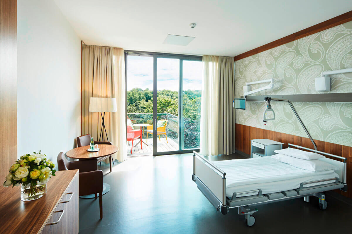 Особенностью клиники в Австрии является предоставление гостиничных услуг, чтобы каждый пациент ощущал себя как в роскошном отеле или как дома. В одно- и двухместных палатах могут разместиться до 100 человек одновременно. В комнатах есть все необходимое: кабельное телевидение, телефон, wi-fi, халат, электрически регулируемая кровать.