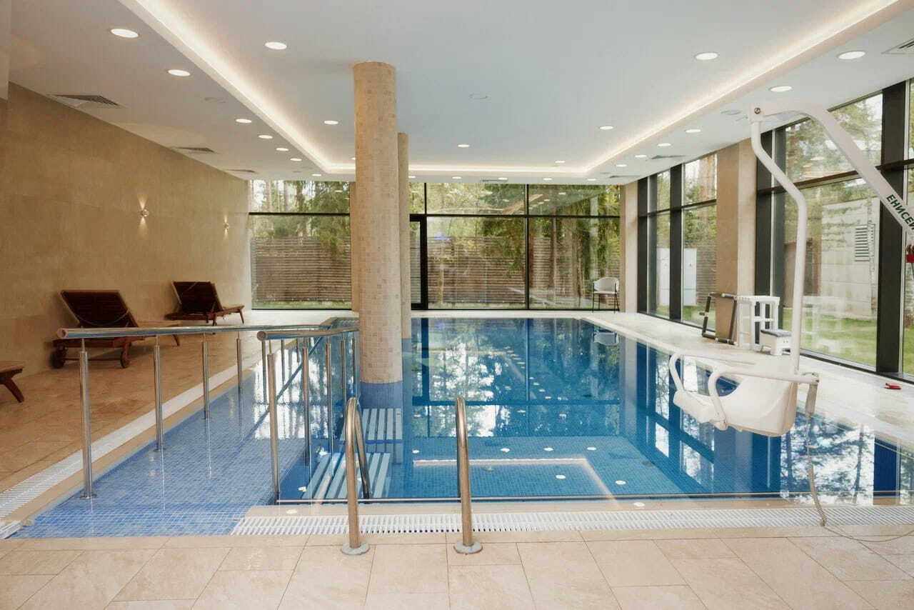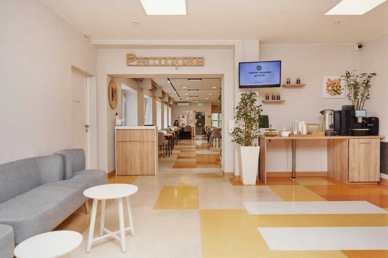 Одноместные и двухместные палаты, оборудованные тревожными кнопками, функциональными кроватями, поручнями в санузлах, специальными раковинами, телефоном и интернетом. Трехразовое питание в ресторане, учитывающее рекомендации врачей и предпочтения самих пациентов, включено в стоимость.
